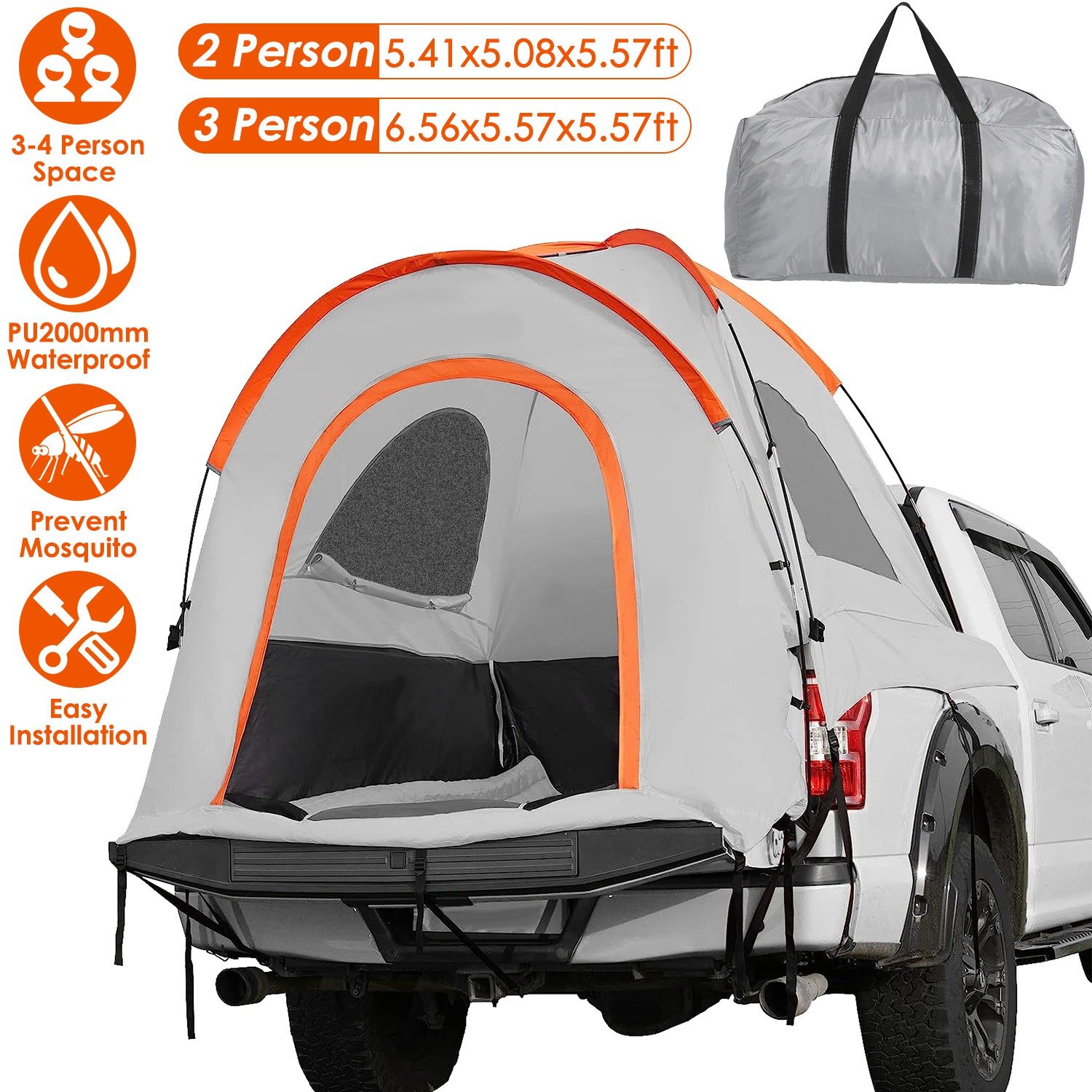 Home > Truck Bed Tent Waterproof Windproof Pickup Truck Tent with Carry Bag 5.41-6.56FT Bed Rainfly PU2000mm Waterproof for Camping Travel