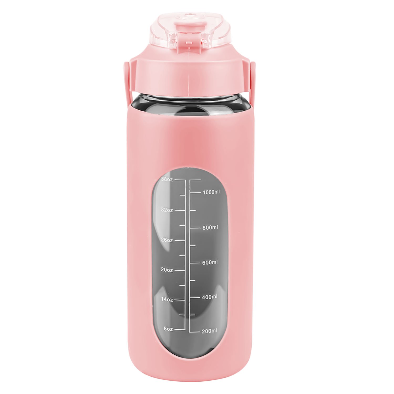 Are you tired of forgetting to stay hydrated throughout the day? Look no further than our motivational water bottle! Comes with timer markers and and precise volume on the side, helping you track your water intake with ease. With its large capacity(32Oz or 64 Oz), you can refill the sports water bottle up less frequently and keep yourself refreshed all day long. Made of high borosilicate glass, suitable for both warm and cold beverages, heat-resistant, dishwasher safe and healthy to use. Slip resistant with silicone sleeve and easy to carry with a built-in handle. And for added convenience, it features a built-in straw, making it easy to drink water on the go. Plus, its stylish design and motivational messages will inspire you to keep pushing towards your health goals. So why wait? Invest in our water intake tracker bottle today and take the first step towards a healthier, happier you!