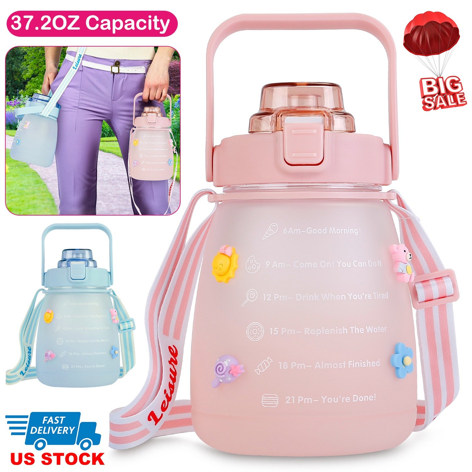 Do you often forget drinking water until you feel very thirsty? Our 37.2oz belly bottle can remind you to stay hydrated and drink water in time, keeping you more healthy and active a whole day! Equipped with a retractable strap, perfect for carrying outside like outdoor sport! Also good for traveling and picnic due to its lovely color and cute appearance! Ideal summer gifts for girls, women and your good friends!