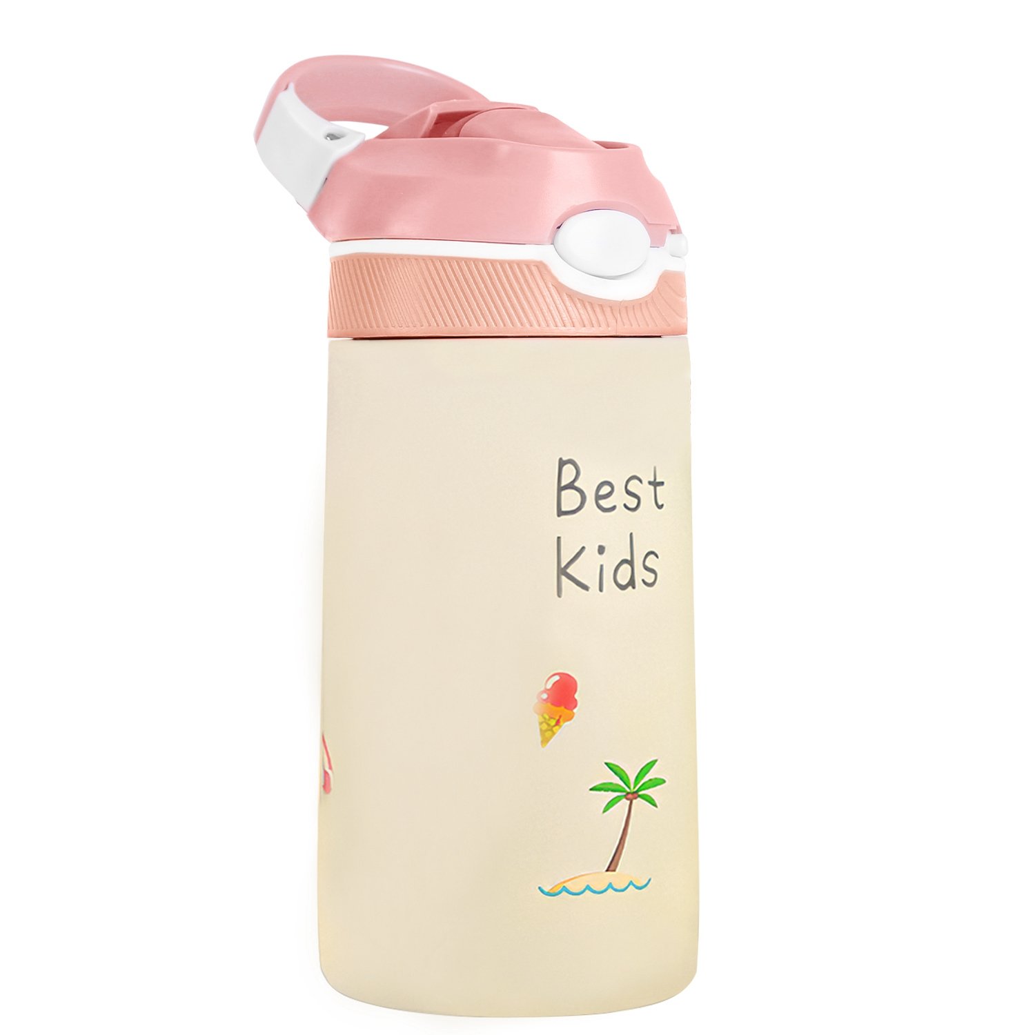 Our insulated bottle features 13.5Oz capacity and keeps drinks stay at the desired temperature for 12-24 hours, allowing kids to enjoy their preferred temperature beverages throughout the day. Also come with cute pictures on the bottle, which encourages kids to keep hydrated all the time. Made of premium 316 stainless steel, safe for children to use and free from harmful chemicals. The lock switch and push button ensures its leak-proof and long-lasting performance. Perfect for school, sports, swimming, or cycling. Perfect for toddlers, boys and girls!