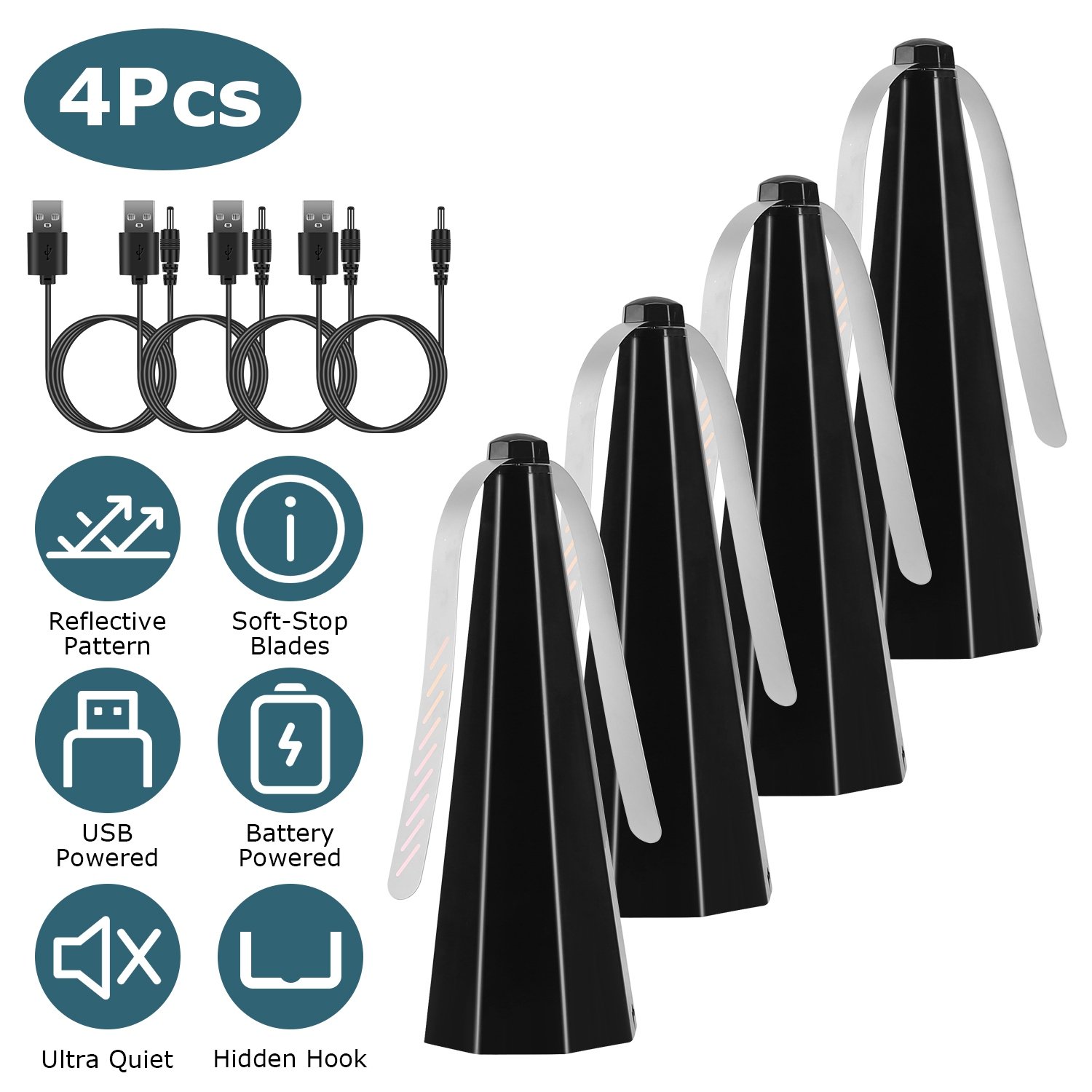 4Pack Fly Table Fans Battery USB Powered Bug Fans Food Fans Fly Table Spinners Traps with Hook for Party BBQ Picnic Camping