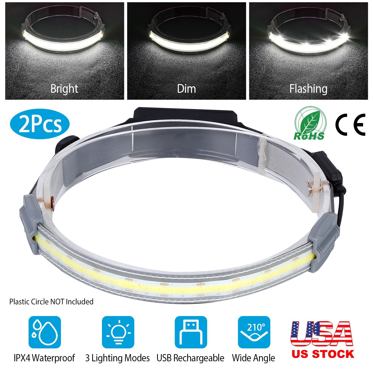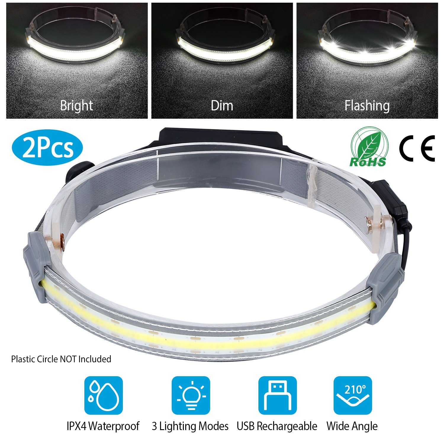 Featured with a front white light and a red rear light with 3 lighting modes, provides sufficient illumination and warning to ensure your safety in dark environment. 7.1in LED light strip illuminates an incredible field with 210° angle view with 1000 lumen, perfectly used in camping, running, working, or anywhere else you need to illuminate. No need to worry about rainy days with IPX4 waterproof rating.