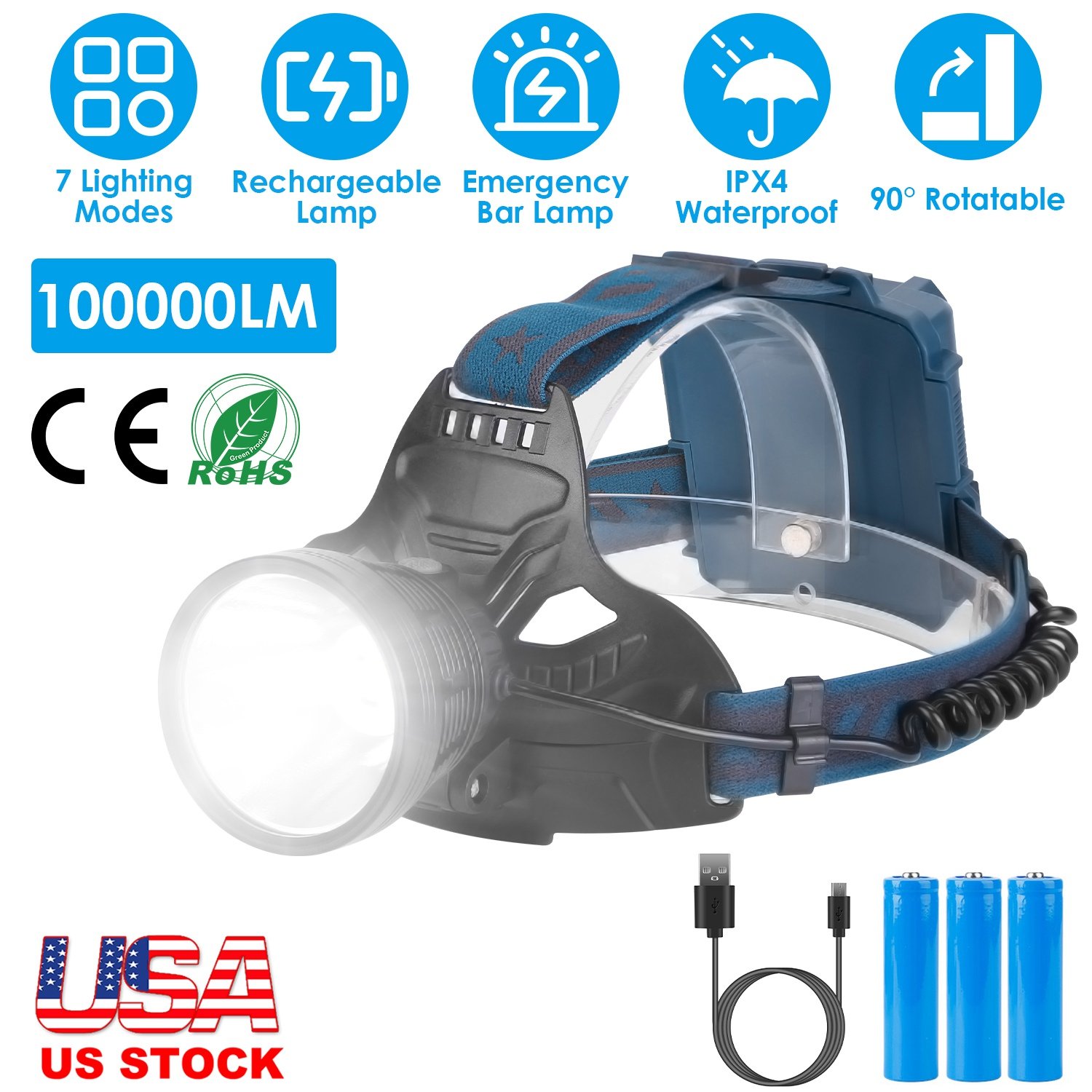 100000LM LED Headlamp 7 Lighting Modes Rechargeable Headlights IP44 Waterproof Rotatable Headlights For Hiking Rescuing Camping
