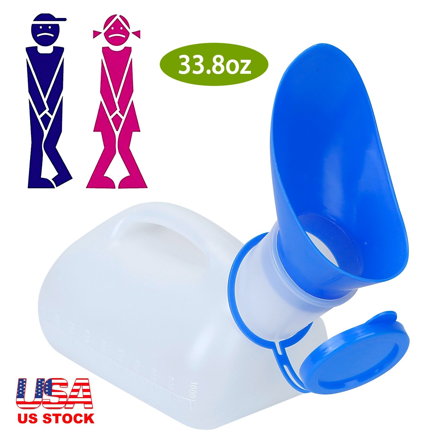 Home > Unisex Potty Urinal Bottle 1000ML/33.8OZ Adult Emergency Urinal Device Portable Male Female Toilet w/ Lid Funnel For Car Camping Travel Hospital Outdo