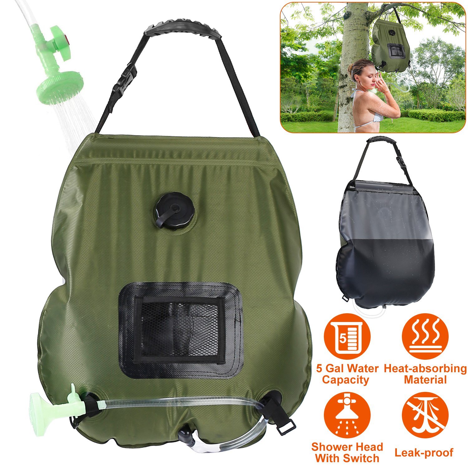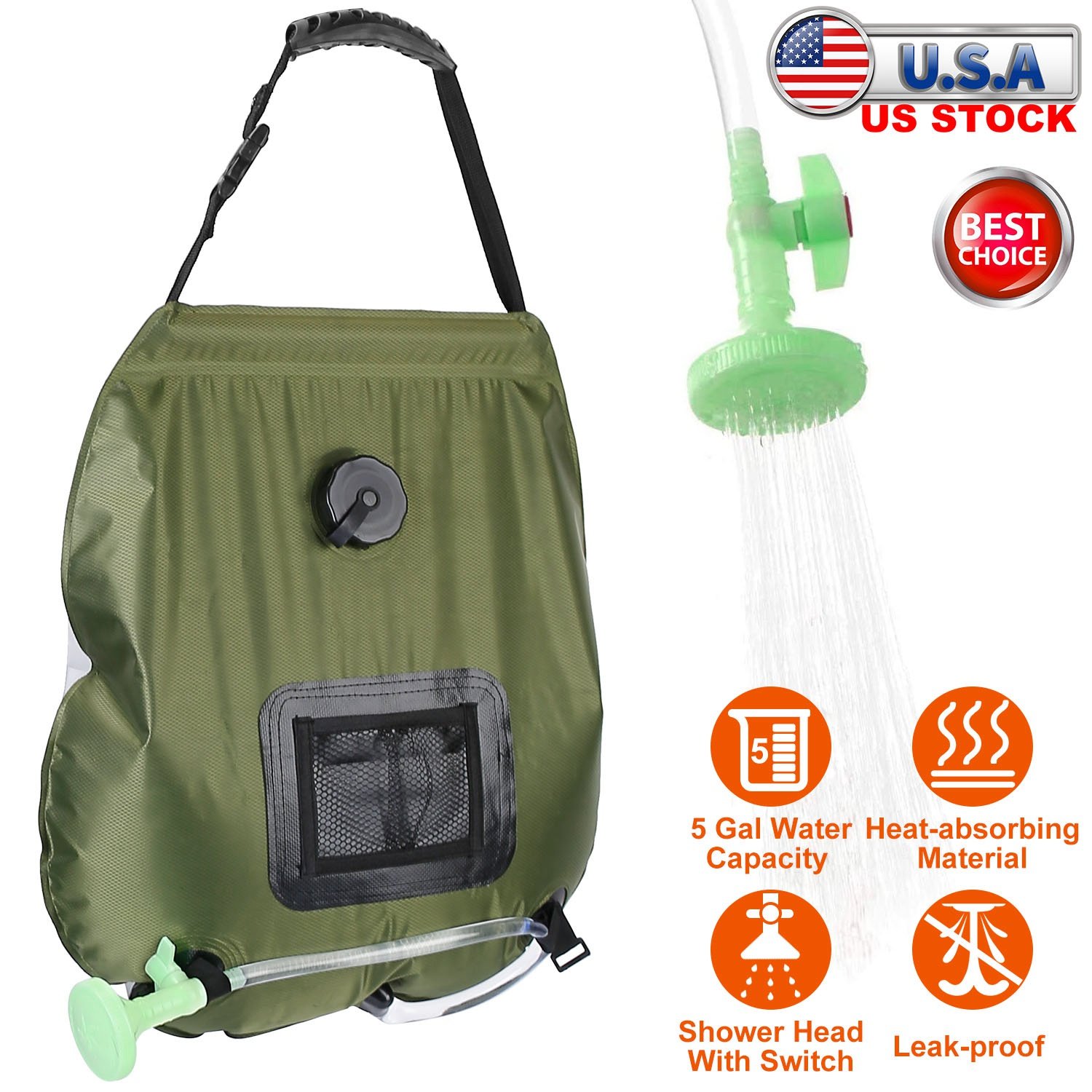 5Gal Solar Heating Camping Shower Bag w/ Removable Hose And Shower Head Portable Shower Bag for Beach Traveling Hiking